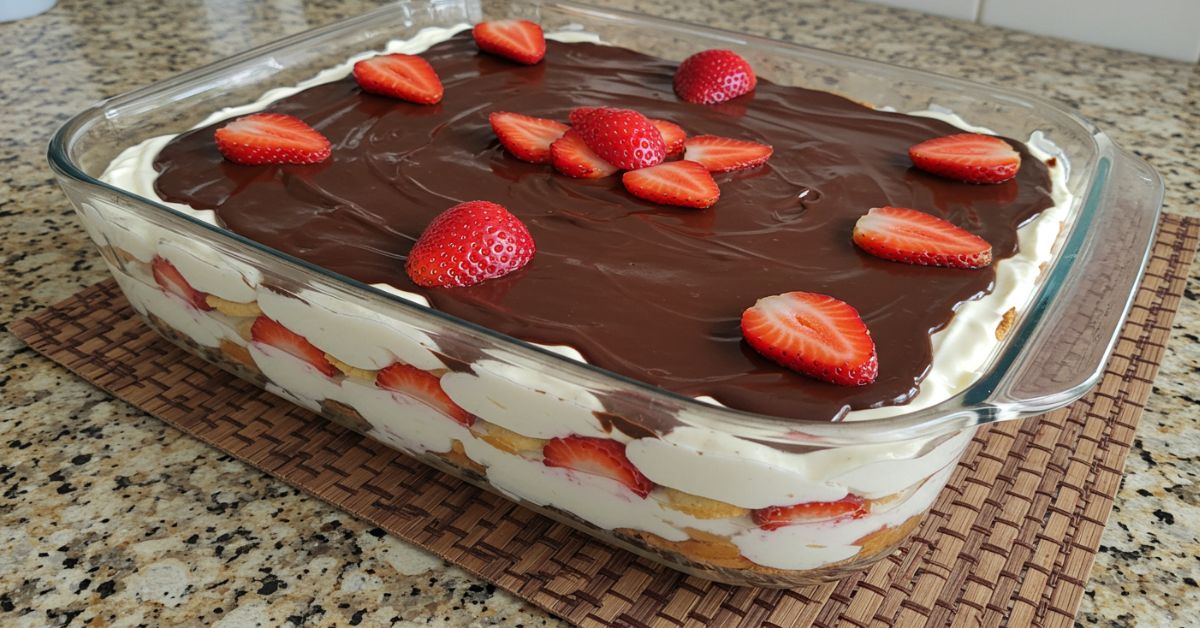 O pavê de morango com chocolate é uma sobremesa clássica que conquista pelo equilíbrio entre a leveza da fruta e a cremosidade do ganache.
