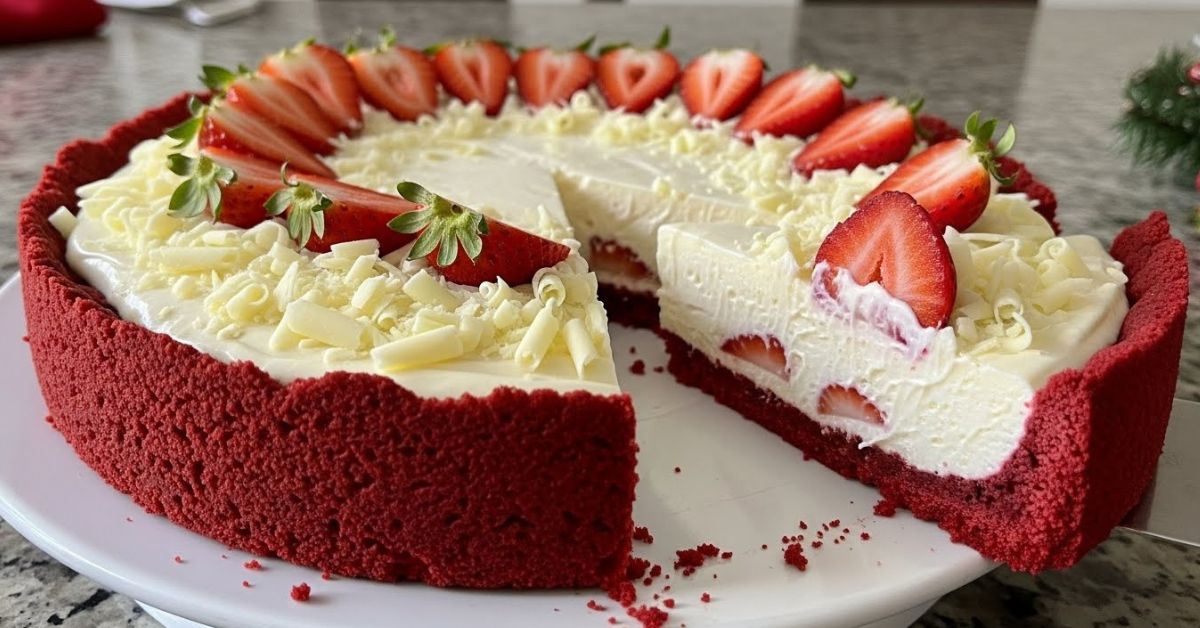 Essa Torta Red Velvet combina uma massa macia e aveludada com um creme branco cremoso e morangos frescos, resultando em uma sobremesa elegante, equilibrada e cheia de sabor.