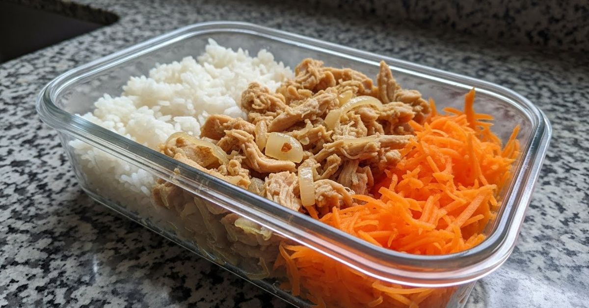 1. Arroz branco + Frango desfiado + Cenoura ralada