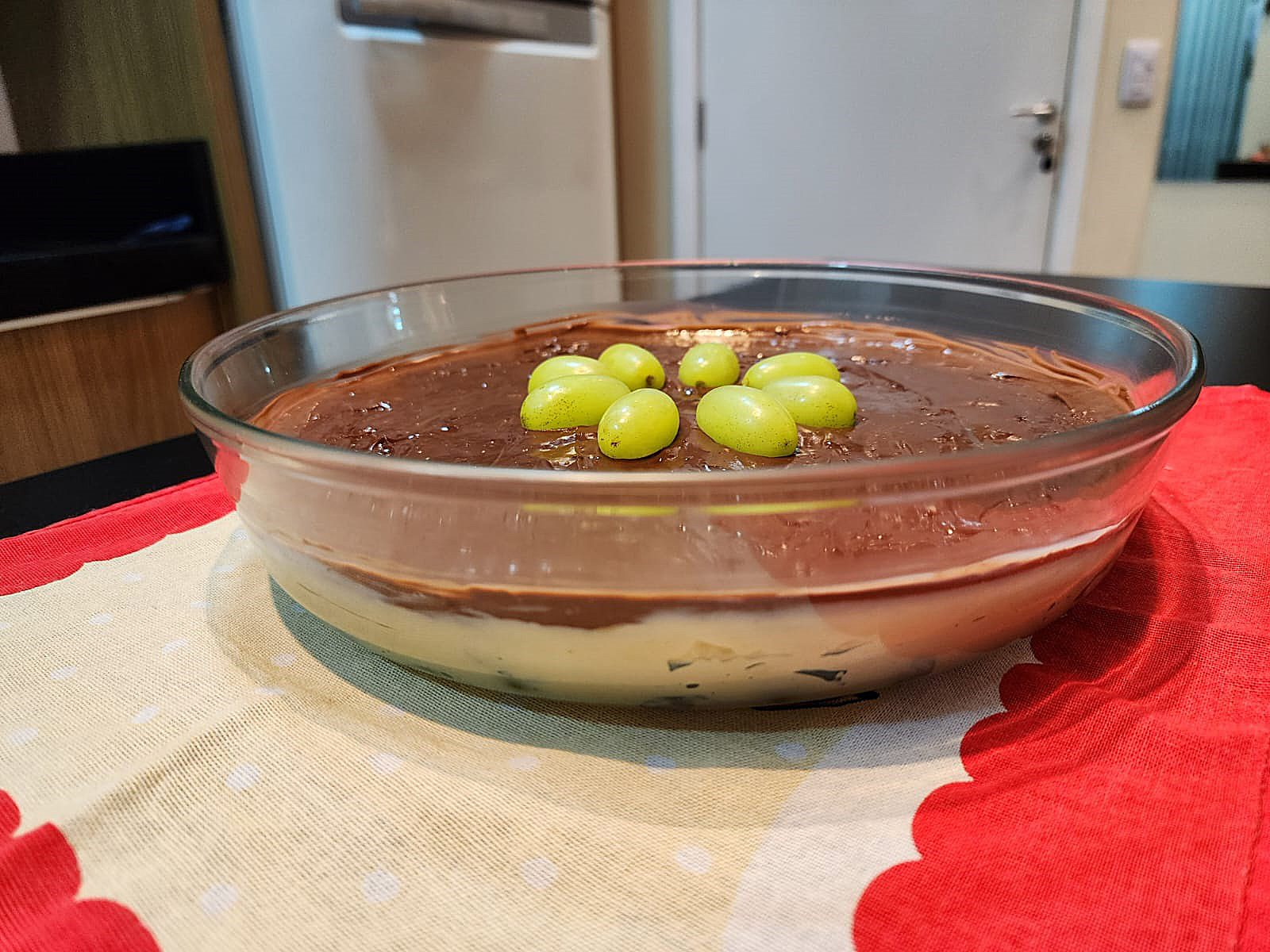 Essa receita é prática, deliciosa e ainda tem uma apresentação linda, graças às uvas inteiras que decoram a superfície. Ideal para compartilhar com a família e amigos, ela combina o frescor das uvas com um creme branco irresistível e uma ganache de chocolate cremosa.