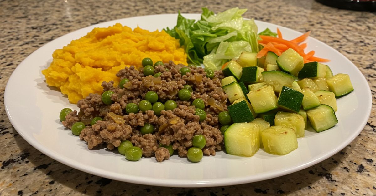 🥩 3. Patinho Moído com Purê de Batata-Doce e Legumes Salteados