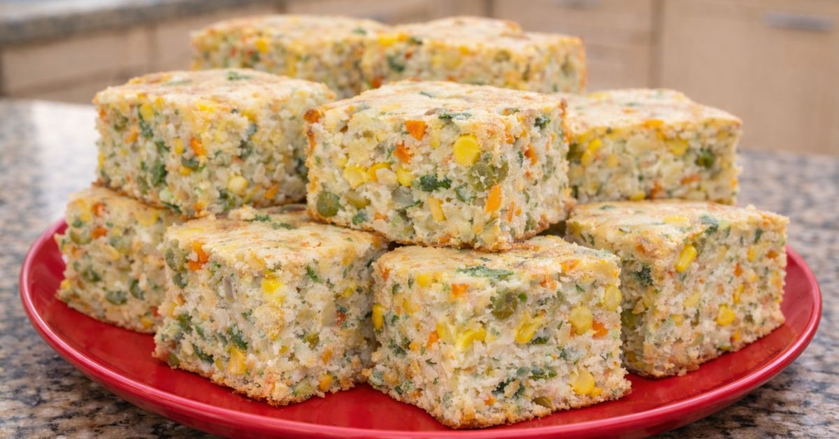 Bata no liquidificador os ovos, o leite e o óleo. Transfira para uma tigela, misture a farinha, o fermento e os legumes. Coloque em forma untada e asse em forno a 180 °C por cerca de 40 minutos.